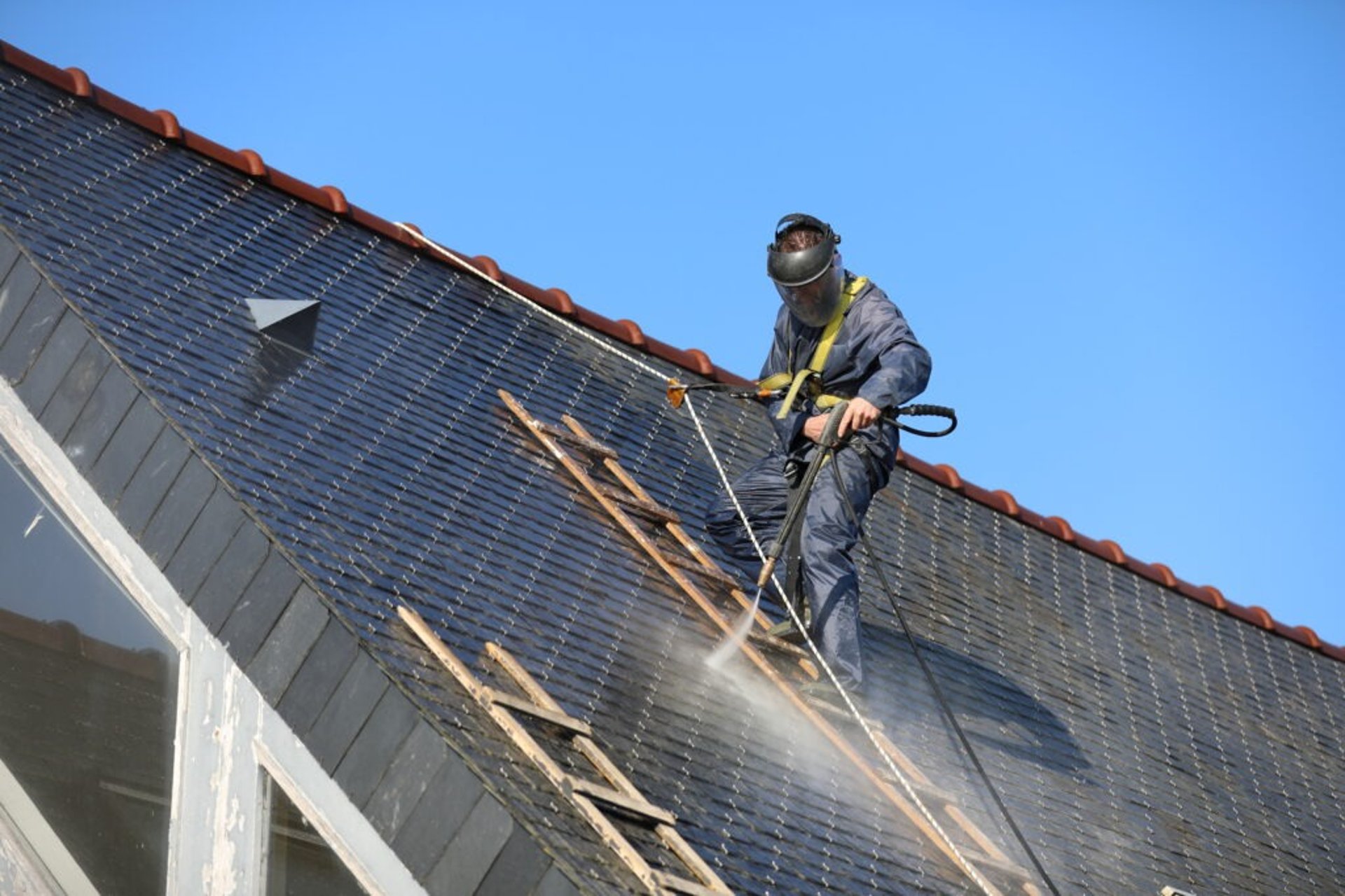 Nous éliminons en profondeur les mousses, lichens et traces de pollution pour redonner à vos tuiles ou ardoises leur aspect d'origine.